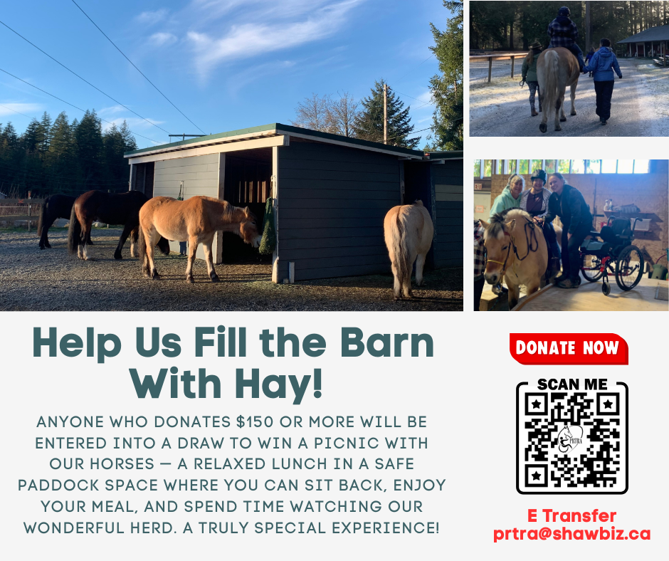 Our Annual Open House was held on December 6th. This a great opportunity for the Community to visit us and have their picture taken with one of our horses, have a tour of the Barn, pick up some baking and participate in our Silent Auction. Our local Scotia Bank is always on hand to support us during this event, and they match our fundraising up to $3,000.